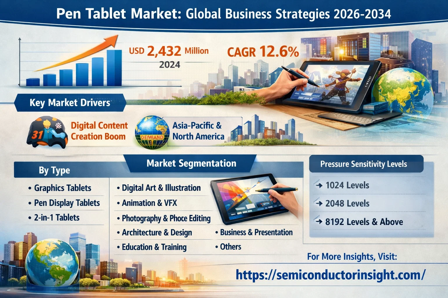 Pen Tablet Market, valued at USD 1,083 million in 2024, is poised for substantial expansion, projected to reach USD 2,432 million by 2032. This growth, representing a compound annual growth rate (CAGR) of 12.6%, is detailed in a comprehensive new report published by Semiconductor Insight. The study underscores the pivotal role of these precision input devices in enhancing digital creativity, design workflows, and interactive computing across various professional and consumer sectors.