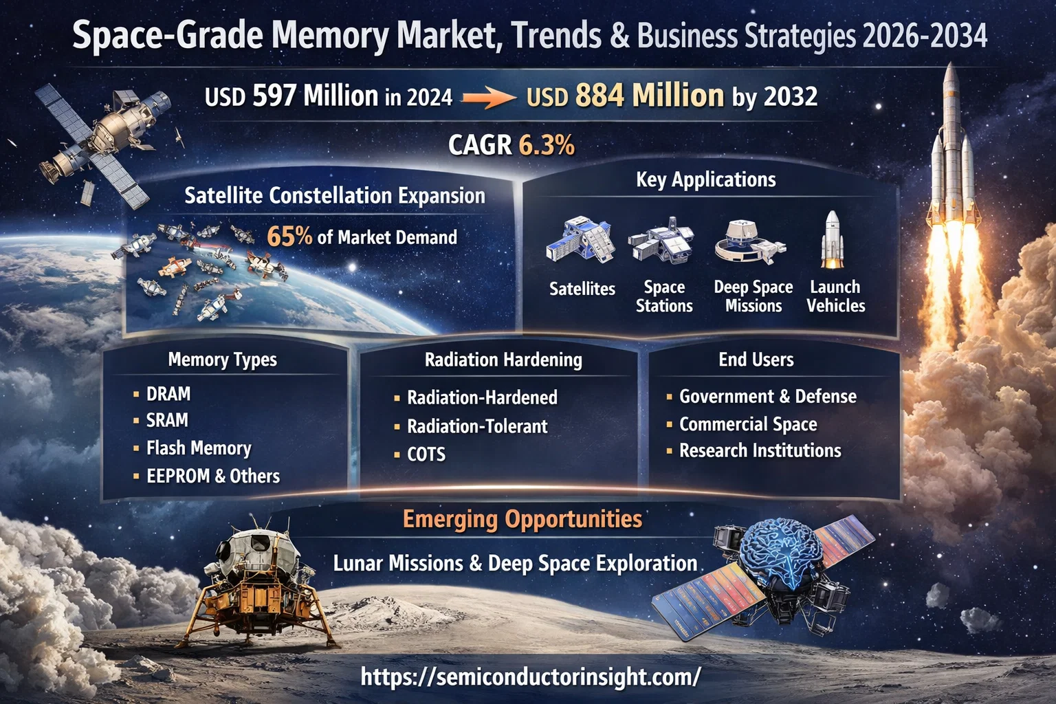Global Space-Grade Memory Market, valued at a robust USD 597 million in 2024, is on a trajectory of significant expansion, projected to reach USD 884 million by 2032. This growth, representing a compound annual growth rate (CAGR) of 6.3%, is detailed in a comprehensive new report published by Semiconductor Insight. The study highlights the critical role of these specialized, radiation-hardened memory components in ensuring data integrity and system reliability for space missions, from low-Earth orbit satellites to deep-space exploration.