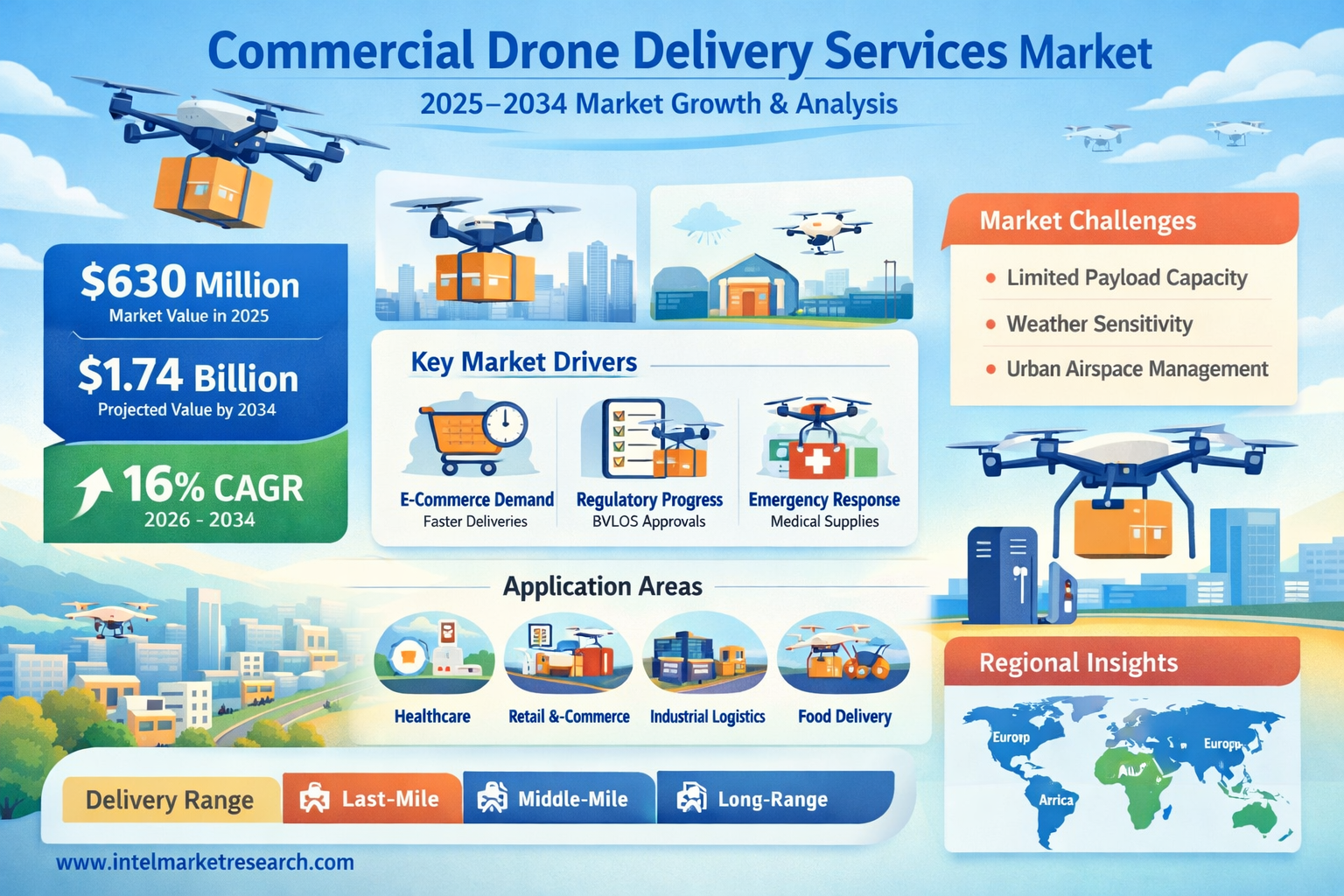 According to a new report from Intel Market Research, the global commercial drone delivery services market was valued at USD 630 million in 2025 and is projected to reach USD 1,742 million by 2034, growing at a CAGR of 16.0% during the forecast period (2026-2034). This expansion reflects accelerating adoption across retail, healthcare, and industrial sectors as companies seek faster logistics solutions while navigating infrastructure limitations.