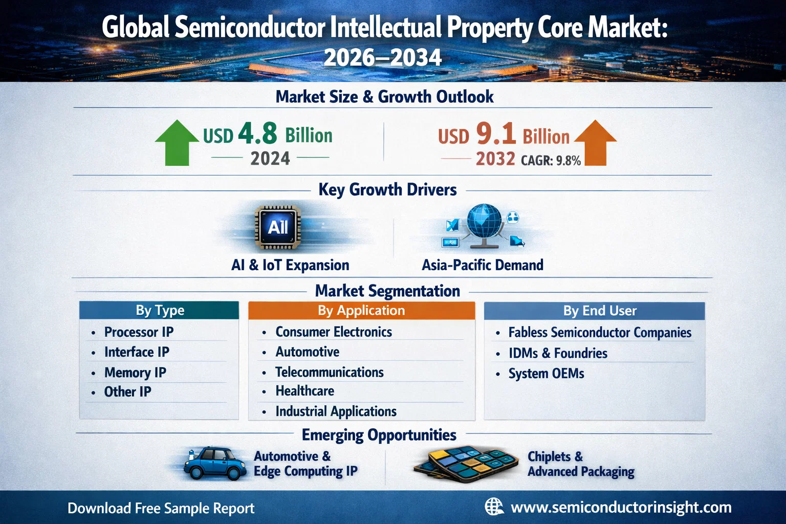 Global Semiconductor Intellectual Property Core Market, valued at a robust USD 4.8 billion in 2024, is on a trajectory of significant expansion, projected to reach USD 9.1 billion by 2032. This growth, representing a compound annual growth rate (CAGR) of 9.8%, is detailed in a comprehensive new report published by Semiconductor Insight. The study highlights the critical role of these pre-designed, reusable semiconductor components in accelerating chip development cycles and reducing design costs across multiple industries.