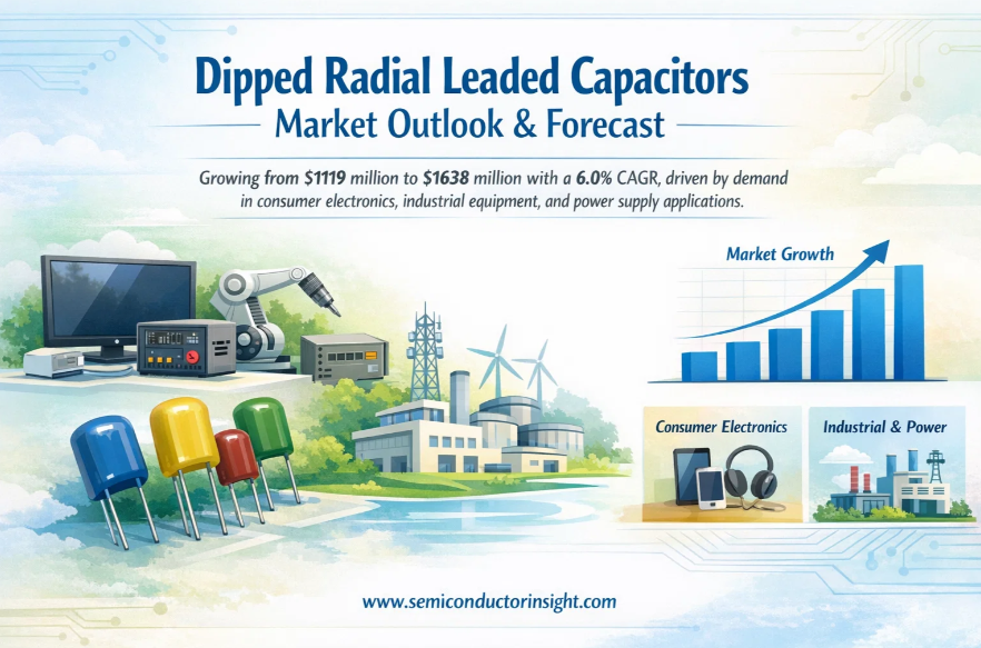 Global Dipped Radial Leaded Capacitors Market, valued at US$ 1119 million in 2024, is poised for steady growth, projected to reach US$ 1638 million by 2032. This expansion, reflecting a compound annual growth rate (CAGR) of 6.0%, is detailed in a comprehensive new report published by Semiconductor Insight. The study underscores the enduring relevance of these fundamental passive components across diverse electronic applications, from consumer electronics to industrial systems.
