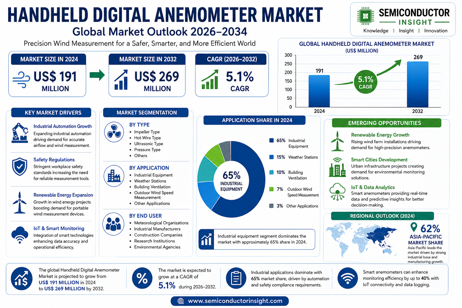 Global Handheld Digital Anemometer Market, valued at US$ 191 million in 2024, is projected to reach US$ 269 million by 2032, growing at a compound annual growth rate (CAGR) of 5.1% during the forecast period. This steady expansion is detailed in a comprehensive new report published by Semiconductor Insight, highlighting the critical role these precision wind measurement devices play across various industrial, meteorological, and commercial applications.