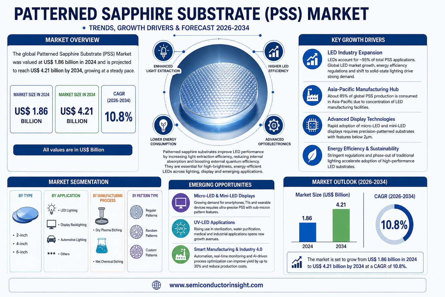 Patterned Sapphire Substrate (PSS) Market Growth at 10.8% CAGR by 2034