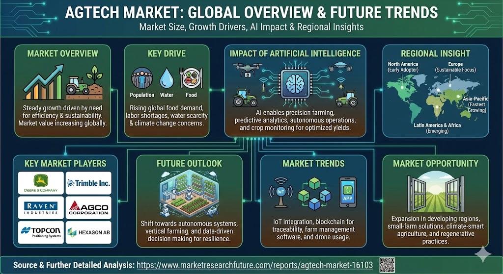 Globally, advancements in genomics, AI-driven automation, and cross-border AgTech collaborations are expected to expand the AgTech market size significantly.