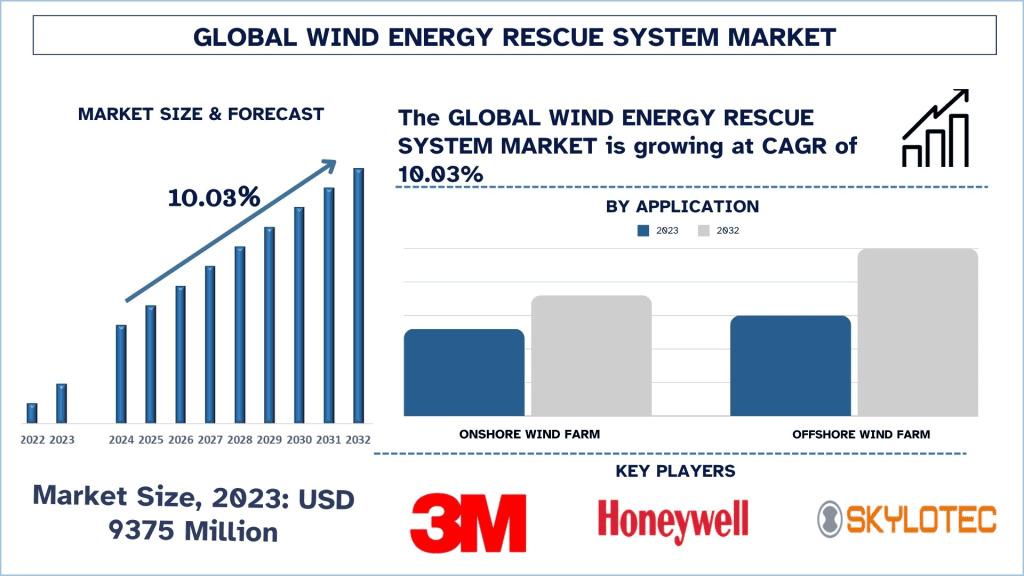 According to UnivDatos, the Wind Energy Rescue System Market was valued at USD 9,375 million in 2023 and is expected to grow at a robust CAGR of approximately 10.03% during the forecast period (2024–2032). The rapid expansion of the global wind energy sector—driven by rising investments in both onshore and offshore wind projects—has significantly increased the number of personnel operating in high-risk environments. As a result, the demand for advanced rescue and safety systems has become a critical priority to ensure workforce protection and regulatory compliance.