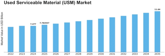 The Used Serviceable Material (USM) Market is undergoing a profound transformation, driven largely by rapid advancements in technology that are redefining how industries repair, refurbish, certify, and reuse high-value components. As organizations increasingly adopt circular-economy practices, technology has become the cornerstone enabling USM to shift from a cost-saving alternative to a trusted, high-performance procurement strategy. According to Market Research Future (MRFR), the USM market was valued at USD 7.477 billion in 2024 and is projected to reach USD 11.64 billion by 2035, growing at a 4.1% CAGR. This steady growth is tightly linked to technological innovation that continues to improve the efficiency, reliability, and transparency of USM operations.