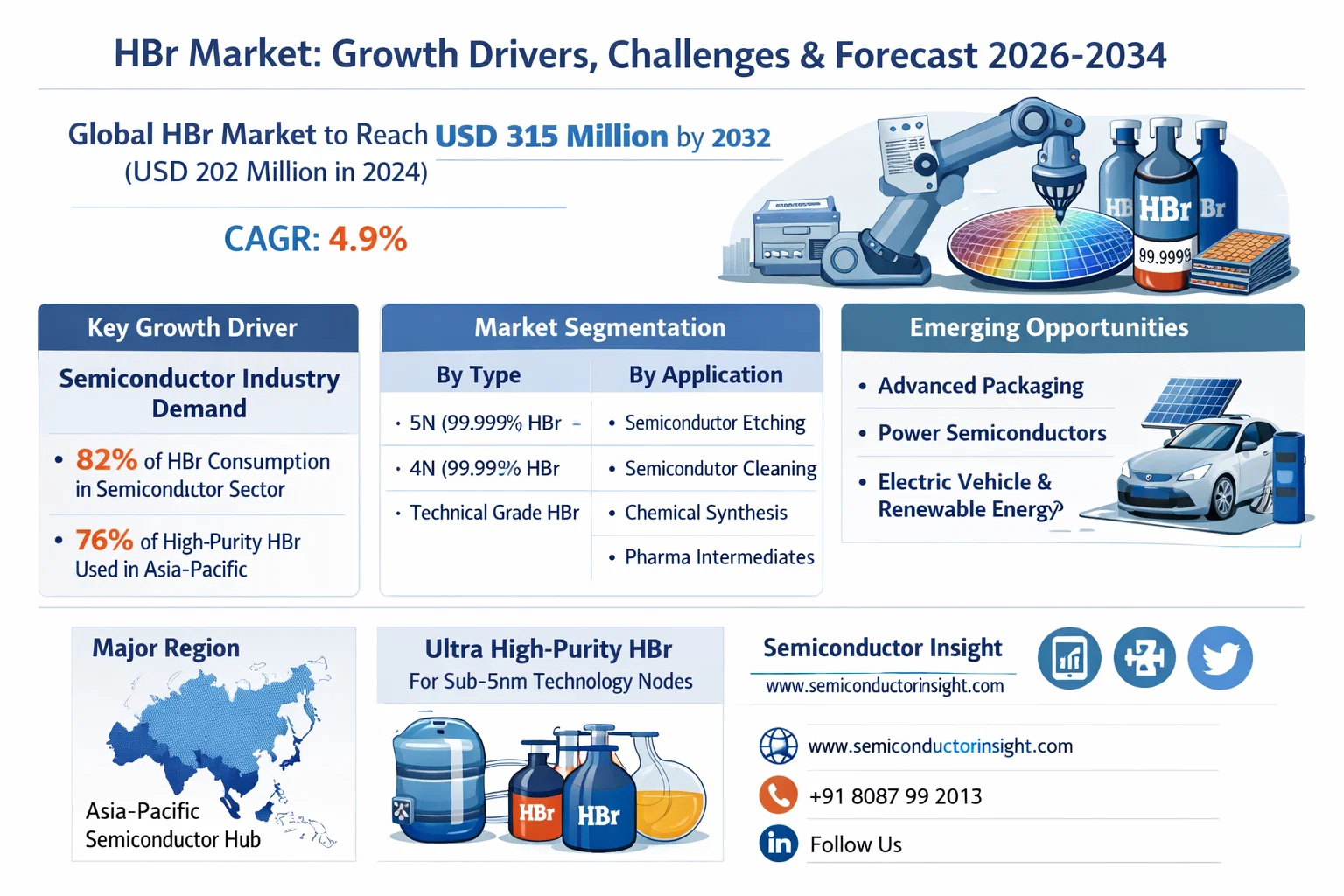 Global HBr Market, valued at a robust USD 202 million in 2024, is on a steady growth trajectory, projected to reach USD 315 million by 2032. This expansion, representing a compound annual growth rate (CAGR) of 4.9%, is detailed in a comprehensive new report published by Semiconductor Insight. The study underscores the indispensable role of high-purity hydrogen bromide in advanced manufacturing processes, particularly within the semiconductor sector where precision etching and cleaning are paramount.