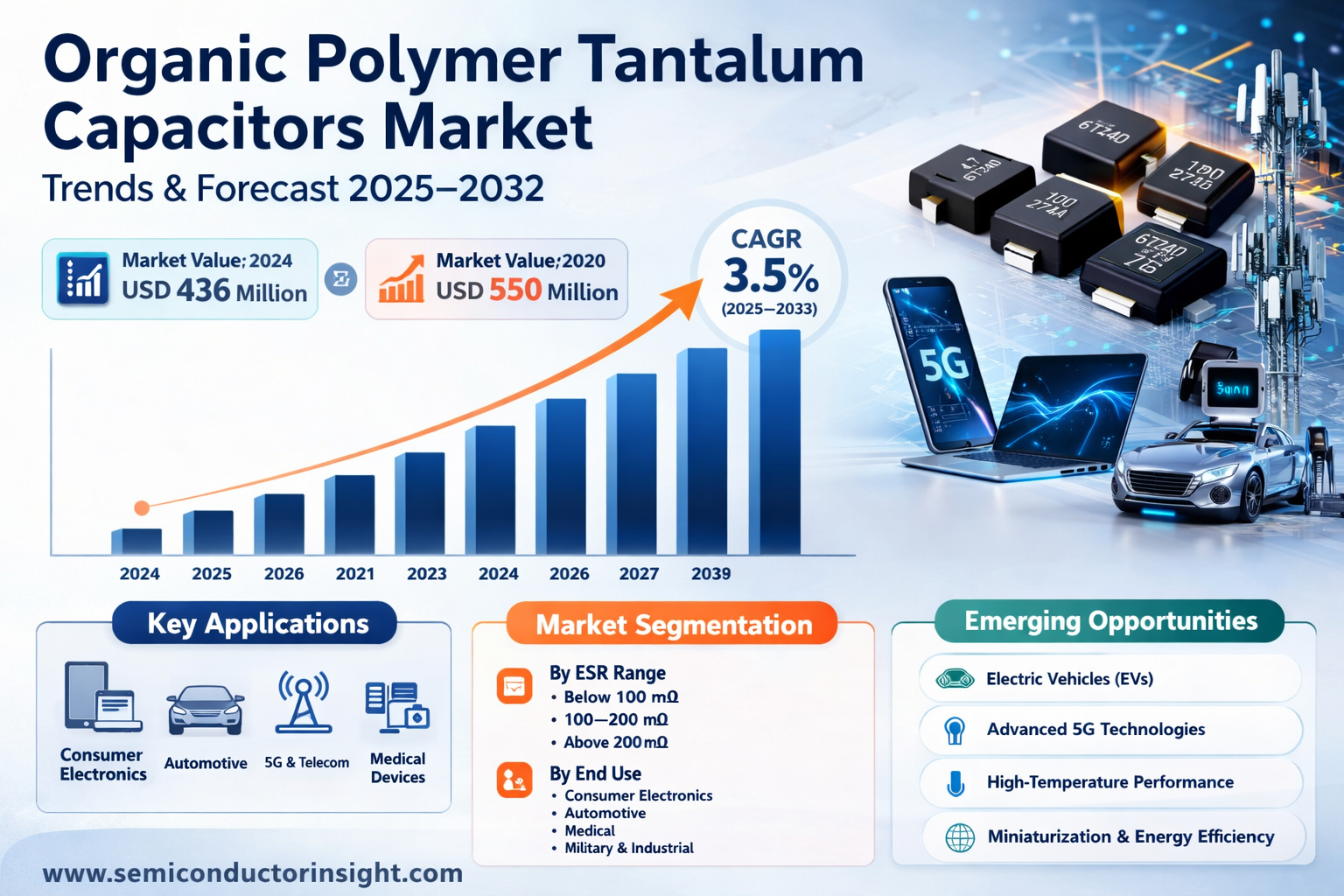 Global Organic Polymer Tantalum Capacitors Market, valued at USD 436 million in 2024, is projected to reach USD 550 million by 2032, exhibiting a compound annual growth rate (CAGR) of 3.5% during the forecast period, as detailed in a comprehensive new report published by Semiconductor Insight. The study reveals how these highly reliable electronic components are becoming fundamental to advancing technology in power management and signal conditioning circuits.