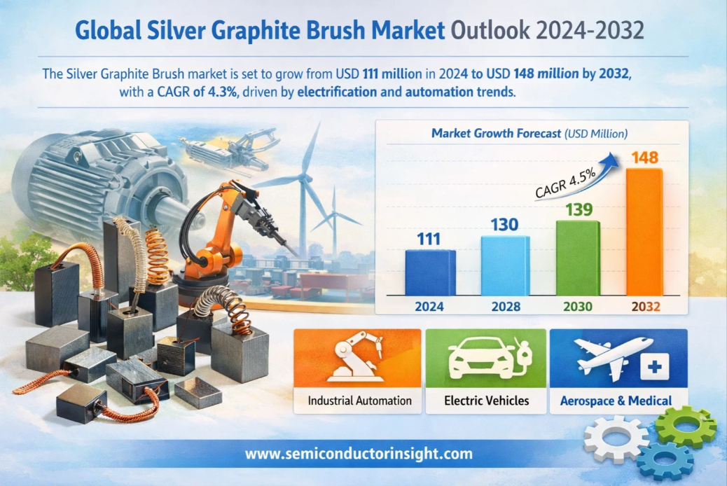 Global Silver Graphite Brush Market, valued at USD 111 million in 2024, is on a steady growth path, projected to reach USD 148 million by 2032. This expansion, representing a compound annual growth rate (CAGR) of 4.3%, is detailed in a comprehensive new report published by Semiconductor Insight. The study underscores the indispensable role of these components in ensuring reliable electrical contact and reducing electromagnetic interference in a wide array of industrial and consumer applications.