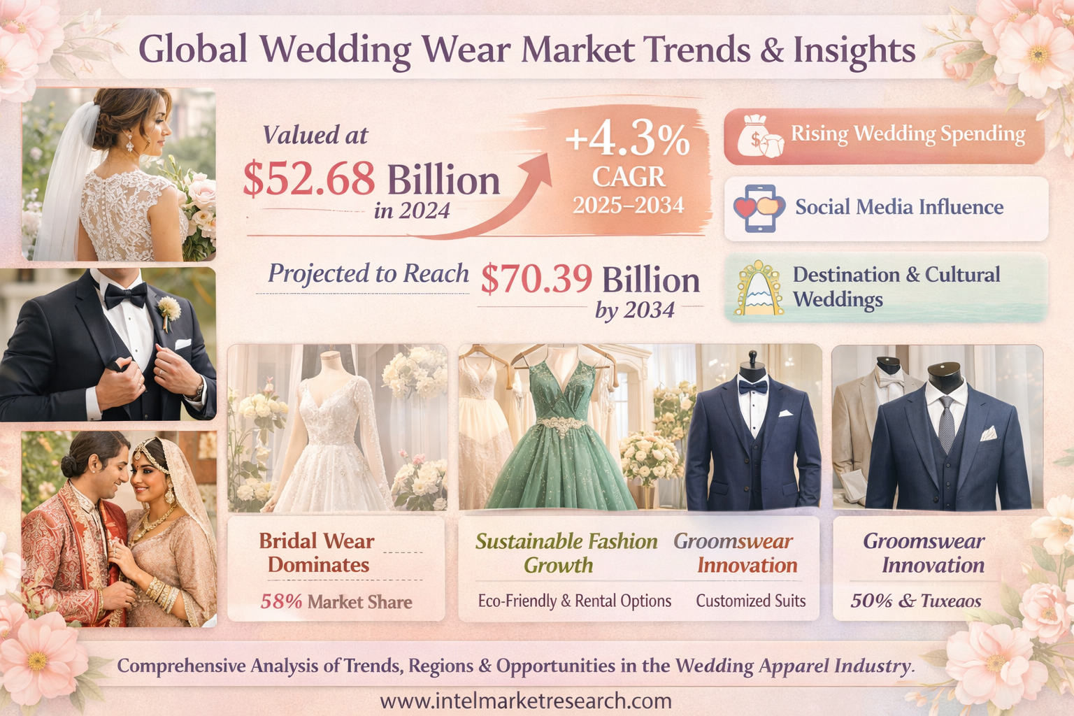 According to a new report from Intel Market Research, the global wedding wear market was valued at USD 52.68 billion in 2024 and is projected to reach USD 70.39 billion by 2034, growing at a CAGR of 4.3% during the forecast period (2025–2034). This steady growth reflects the increasing cultural and economic significance of weddings worldwide, coupled with evolving fashion trends and rising disposable incomes in emerging markets.