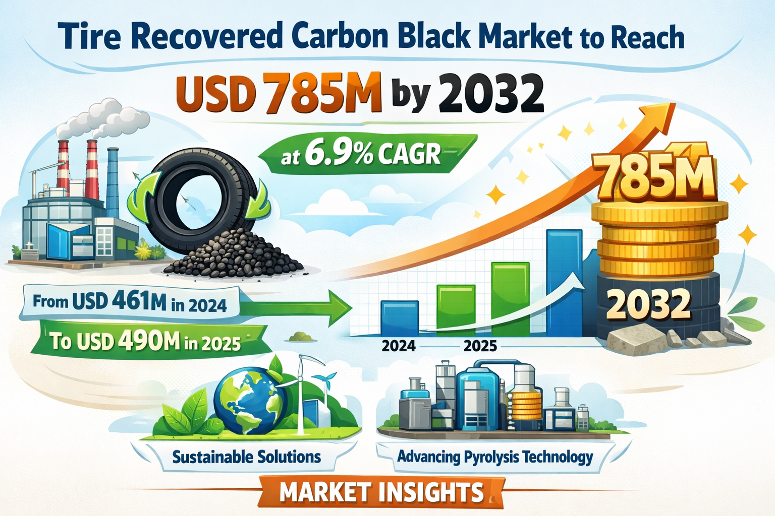 Tire Recovered Carbon Black Market to Reach USD 785M by 2032 at 6.9% CAGR