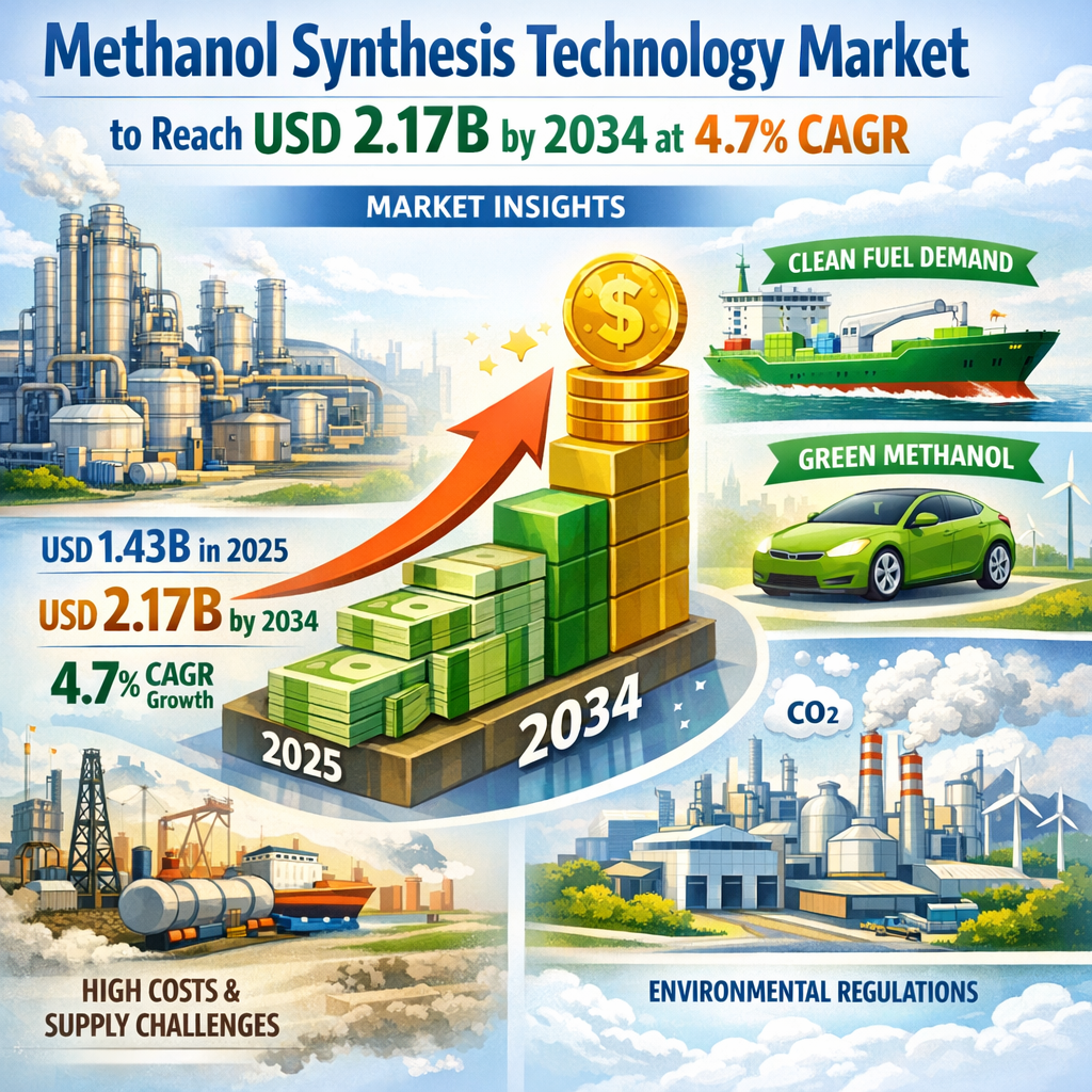 Methanol Synthesis Technology Market to Reach USD 2.17B by 2034 at 4.7% CAGR